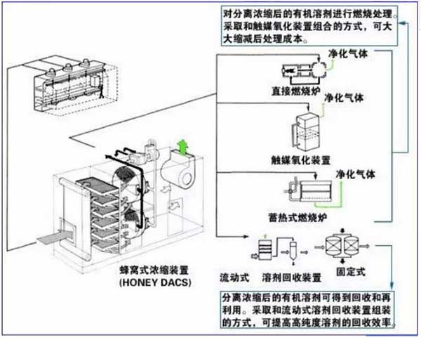 蜂窩活性炭用于低濃度VOCs的吸附濃縮工藝;摻加了一定量的粘合劑(黏土、高嶺土、海泡石等)擠壓成型;目前市場上的蜂窩炭的比表面積一般在400-600m2/g;吸附速度和脫附再生速度都較慢,只適用于低濃度的VOCs.