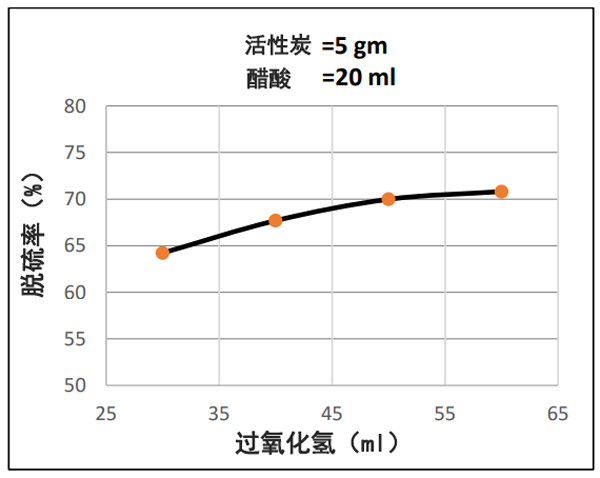 圖3:所用樣品中脫硫百分比與H2O2含量之間的關系。