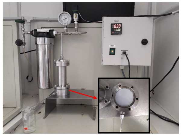 為了生產(chǎn)聚合物膜,聚偏二氟乙烯和1-甲基-2-吡咯烷酮分別用作聚合物和溶劑。圖1展示了用于制備涂料的過程。最初,聚合物PVDF使用加熱套在60至70℃的溫度范圍內(nèi)完全溶解在1-甲基-2-吡咯烷酮溶劑中(圖1a)。為了獲得更好的合成膜滲透通量,加熱套溫度應(yīng)始終保持在上述范圍內(nèi)。然后將涂料溶液注入干凈的瓶中,再將所需量的粉末活性炭添加到原液中以生成用于混合膜的原液。最后,將裝有涂料溶液的玻璃瓶放入超聲波儀中8小時,以確認添加劑的均勻混合,在制備的涂料中沒有產(chǎn)生任何氣泡。制膜過程使用甲半自動膜澆鑄機施加到合成使用干-濕相處理的平片膜。