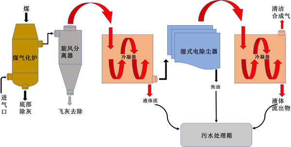 圖1:陶瓷廠煤氣化生產系統示意圖。