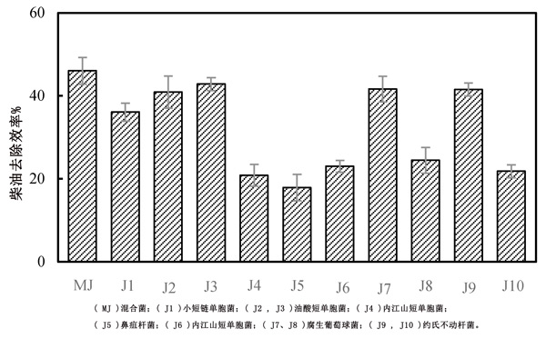圖1:經篩選的菌株培養后對柴油的去除率。