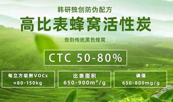 比表面積是指單位質(zhì)量活性炭所具有的表面積。它是衡量活性炭吸附性能的重要指標(biāo)之一。比表面積越大,活性炭的吸附能力越強(qiáng),因為它能夠提供更多的表面積來吸附有害氣體或異味分子。一般來說,韓研的活性炭的比表面積可以達(dá)到900㎡/g以上,而普通活性炭的比表面積可能在100~600㎡/g之間。此外,除了比表面積之外,還需要關(guān)注其他參數(shù)指標(biāo)如孔徑分布、孔容率等等。這些參數(shù)也會影響活性炭的吸附效果。只有選擇了適合自己需求的活性炭才能更好地發(fā)揮其吸附作用。因此,在選擇氣體處理活性炭時需要綜合考慮多個因素,如CTC值、比表面積、機(jī)械強(qiáng)度等等。只有選擇了適合自己需求的活性炭才能更好地發(fā)揮其吸附作用。