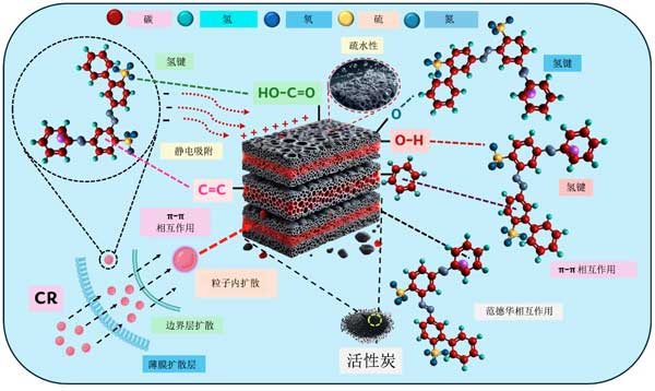 圖5:示意圖表示在吸附過程中SCAC和CR之間的關(guān)鍵相互作用。